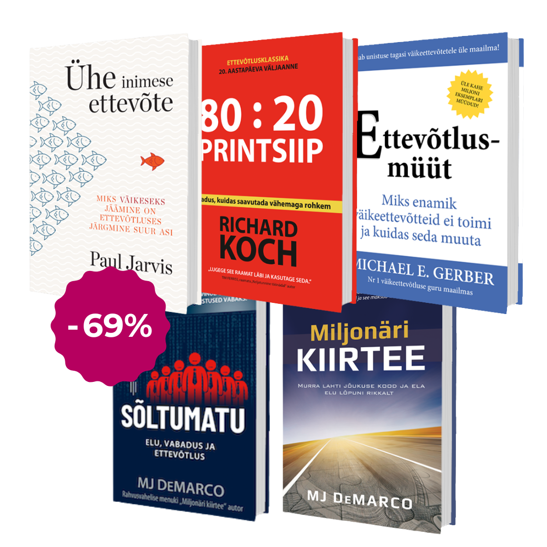 5 raamatut tavahind 150 € musta reede hind 47 €
